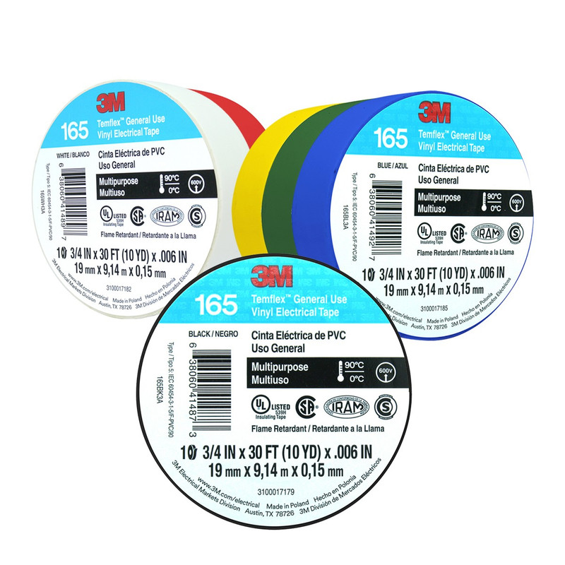 3M™ Temflex™ Vinyl Electrical Tape 165 es una cinta aislante de vinilo de uso general de 7mm de espesor y alto rendimiento.